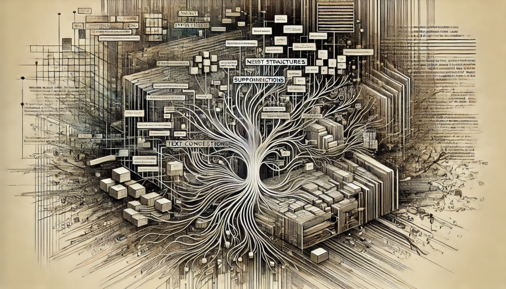考えてみたら、これは入れ子構造になっていると考えることもできる。元の文章というか文脈があって、そこに補足が入る。補足というか派生した別の思考というか。そして元の道に戻ってくる。しかし、本当はこの補足という新しい流れにも、さらにそこから枝が生まれる余地があるのではないか。しかし今の文章構造というか記述方法ではこれを捉えることができない。これを表現することができない。