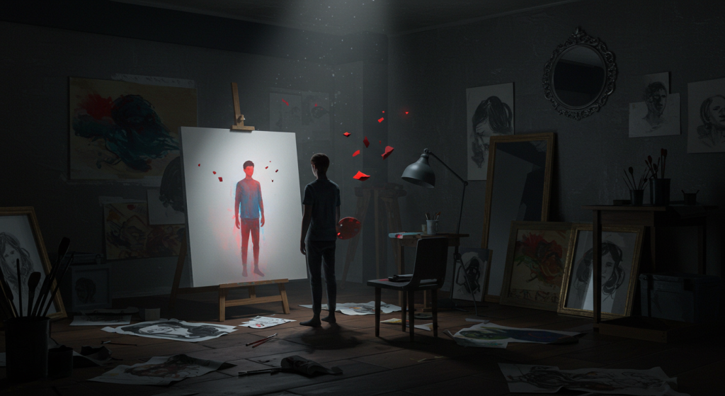 例えば、何かのジャンルで自分が──まあわからないが──何か絵を描いたとして、何かのジャンルの絵を描いたとして、「いやこれはすごく好きだ」と。自分がこのバックを書いたこの絵はすごく好きで、すごくいいと思ってる具合っていうのは、別に自分の作品を肯定するというのは──まあこれは外向きに肯定してるところを見せるということと──自分の中で「まだまだだな」と思うところは全然別であって、外向きにネガティブになる必要はないんだけども、自分の中では「これが最高だ」と思ってしまうと、それ以上はないってことになってしまうのかもしれない。
