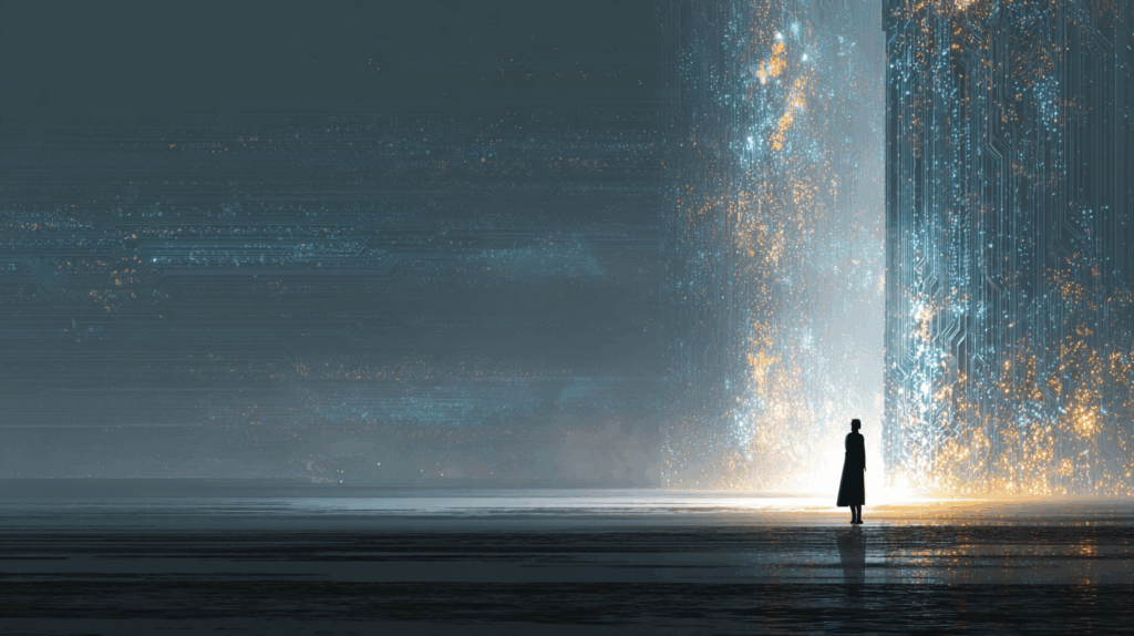 そして、もし知性の価値が誤差レベルになり、意味が失われ、代替されてしまったと仮定したとき、それでも残る人間らしさとは何なのか。人は、自分のアイデンティティが揺らぐような感覚を覚える。自分の担っている役割や仕事がAIにも可能だと知ると、危機感を抱く。それはAIだけではなく、他人に置き換えられると感じたときにも同じように感じるものだ。